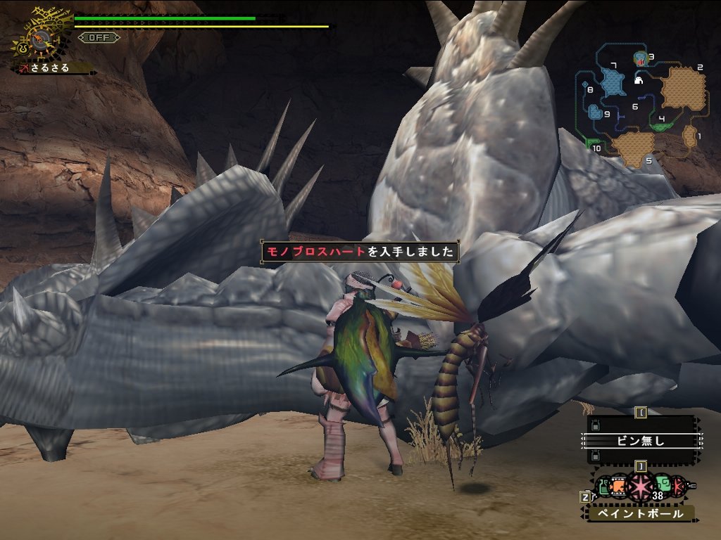 砂漠の夜はガレオス多すぎ。火事場を使っていたのでガレオスの攻撃でものすごく削られてあせる。んで、操作ミスでモノの攻撃受けてやられたよー。