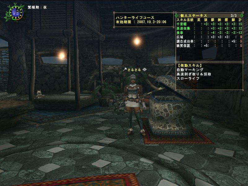採取装備は、高速採取と千里眼。おまけにスローライフ。